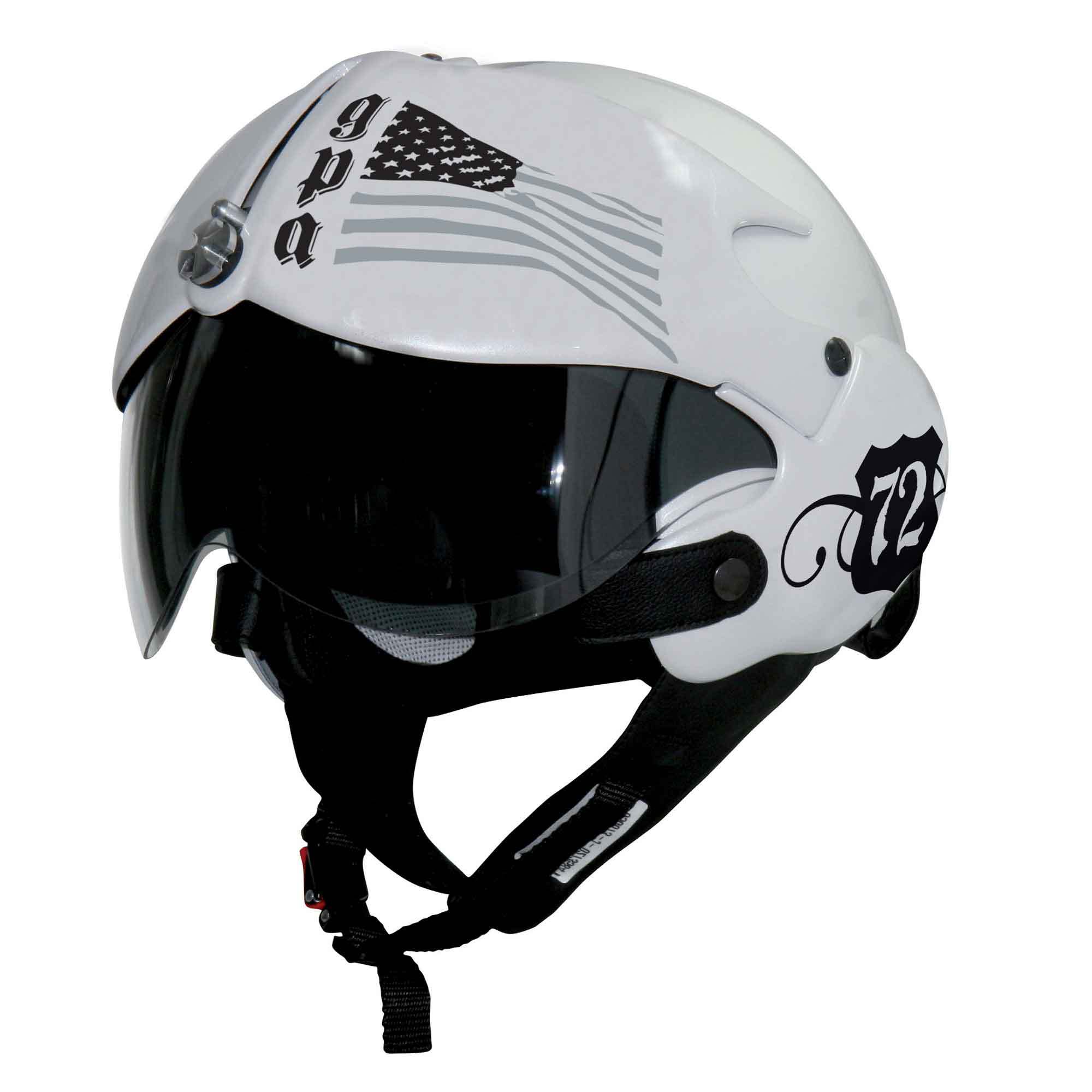 French manufacturer GPA have re-released a classic design in the Aircraft helmet. Previously known as the 'Osbe Tornado' (GPA having bought OSBE) it has distinct styling and an innovative visor system. The clear visor also has a retractable tinted visor behind it, a system unique to this helmet.